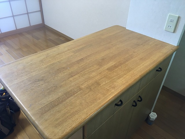 まな板の代わりに使っていた為か多くの傷がありますが(写真をよく見るとお分かりいただけるかと思います)その修復になります。